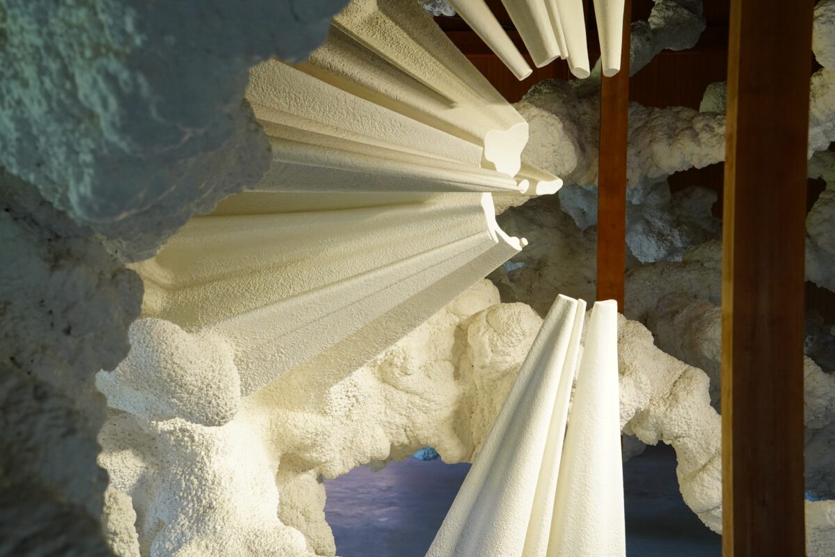 館内に入ると、長い通廊は真っ暗。微かに見える太陽光を頼りにつたいながら進むと、太陽光が差し込む窓の通って室内への入り口に辿り着く体験型アートがお出迎え。