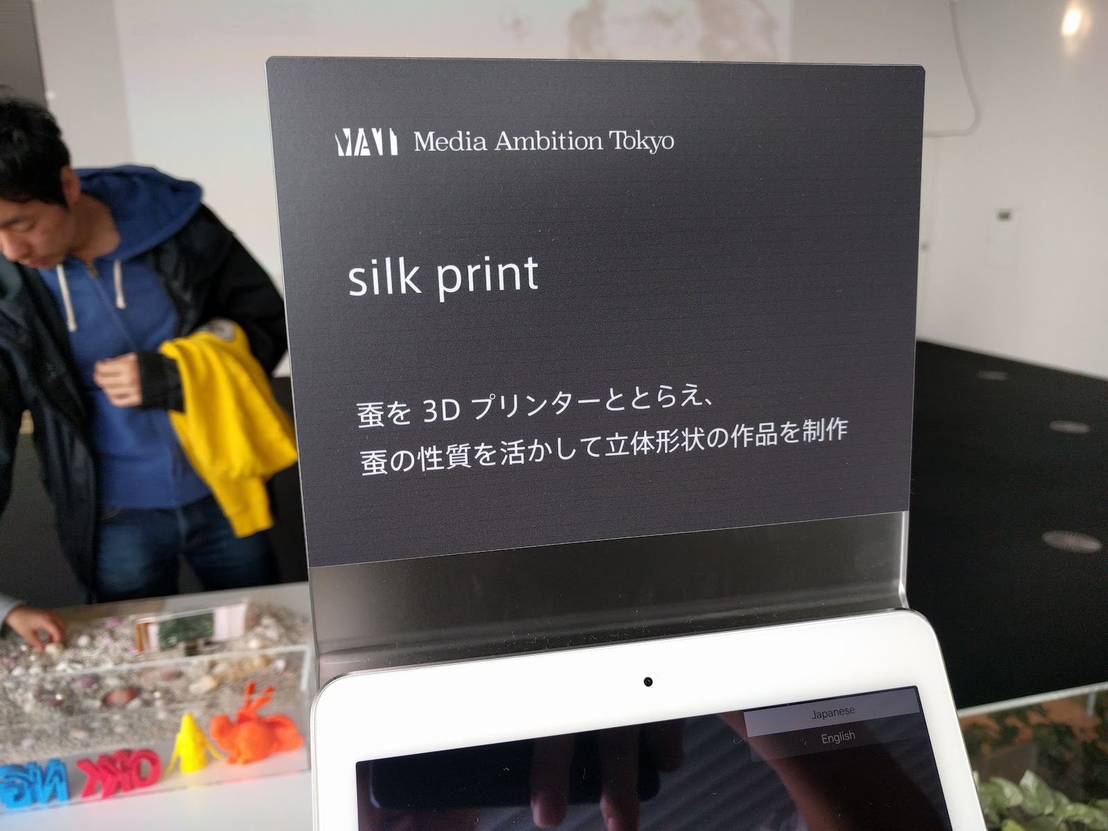 プラスチックやシリコン、金属とは違う、自然由来の蚕の糸だからか、暖かみを感じた気がします。どこか、障子や和紙アートを連想しました。やっぱり有機物っていいですね。