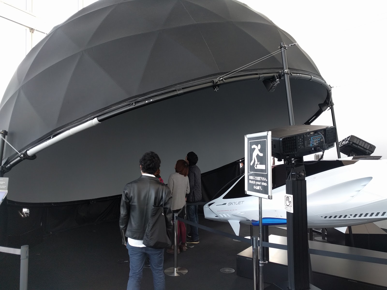 USJのバック・トゥ・ザ・フューチャーみたいな感じ。酔いそうになりました(笑) スクリーンが球形のため、映像に合わせて体を傾けているのが面白かったです(笑)