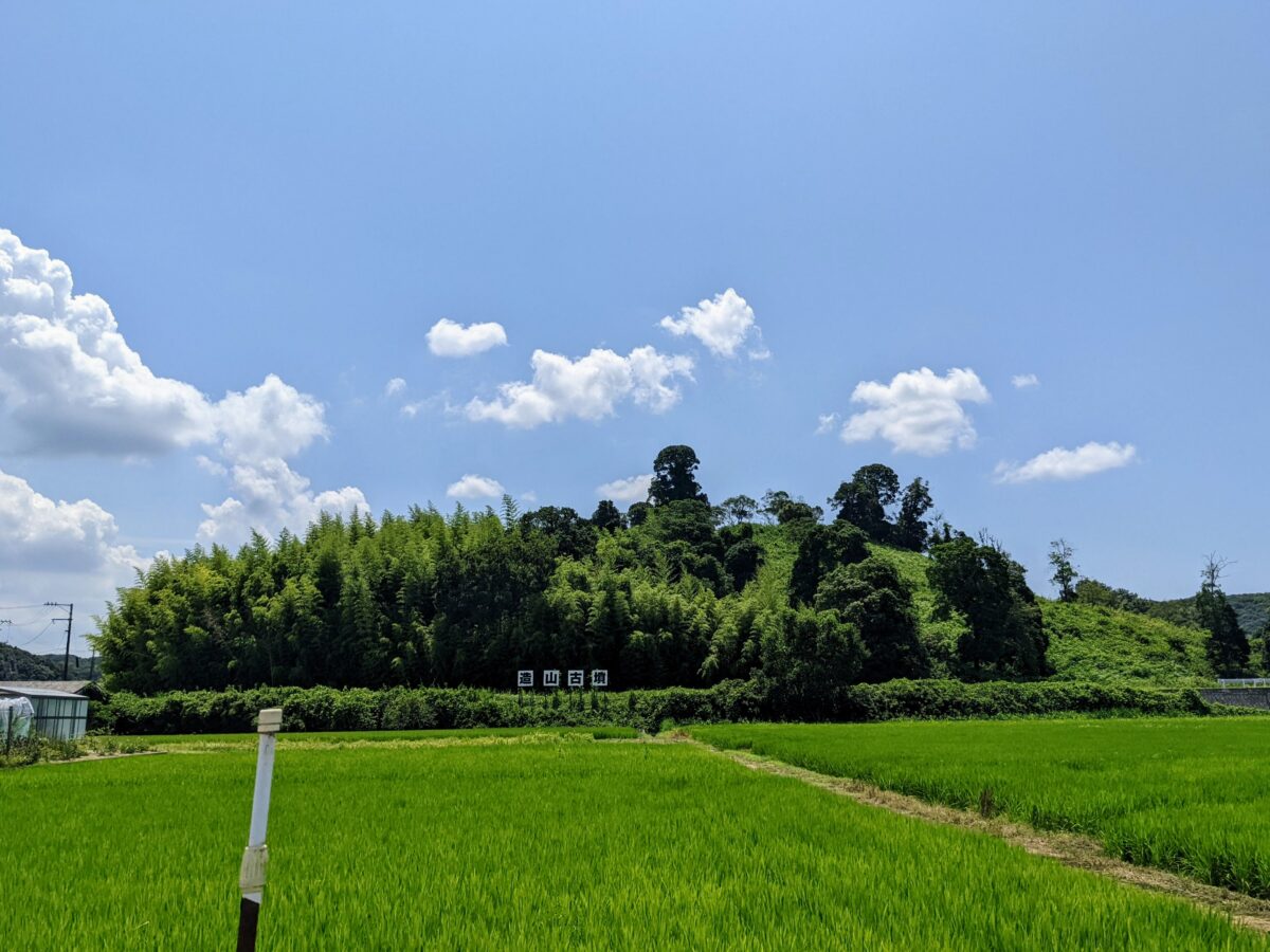 自転車を走らせる中でようやく見えてきた造山古墳。道中、ただの山や丘を見て何度も「あれが古墳だ!」と言ったのは内緒です。