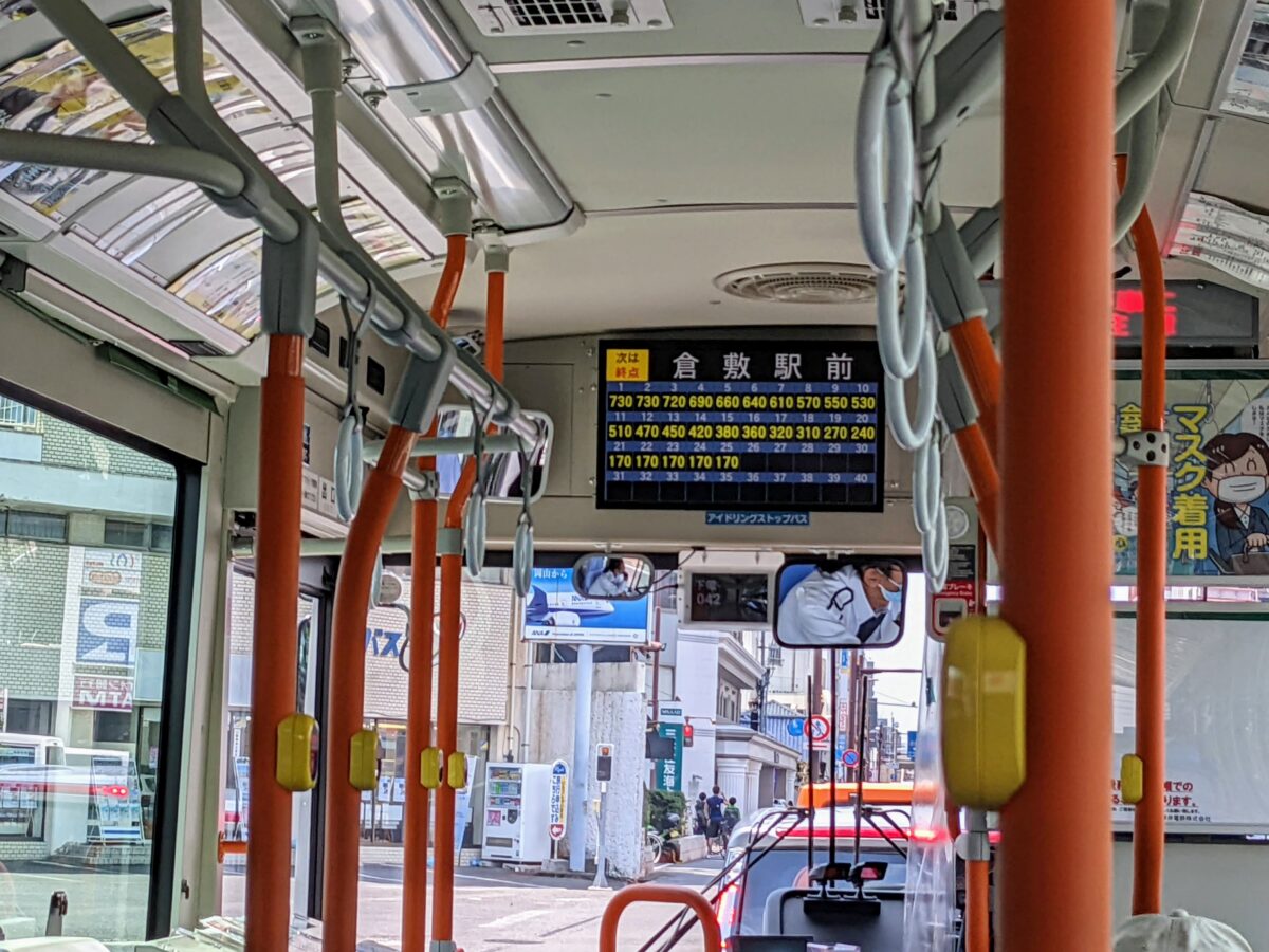 鷲羽山・児島半島のホテルから、3日目のメインである倉敷の美観地区を目指します。このときは、児島駅発のバスで約1時間弱で倉敷駅に着きました。